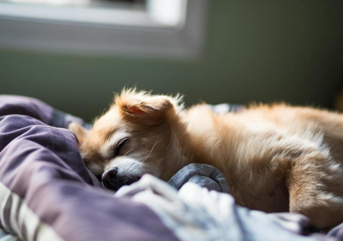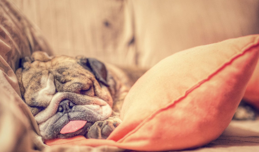 Знакомое для всех любителей собак зрелище: питомец уютно свернулся калачиком, положив голову на подушку. Причем этом выглядит так, как будто он точно знает, что так спать намного удобнее.