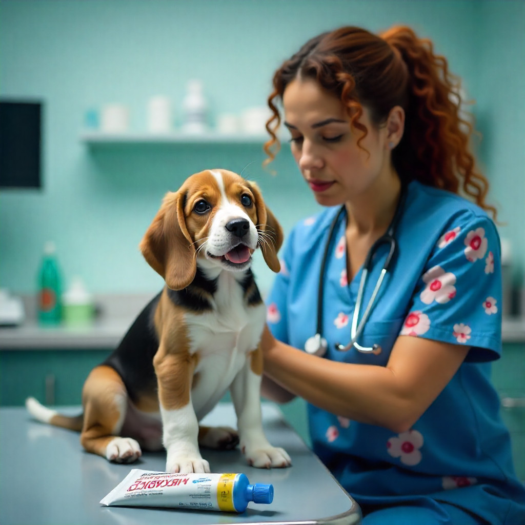 Перед нанесением участок кожи тщательно промывают теплой водой, высушивают и затем тонким слоем наносят мазь. Чтобы собака не облизывала обработанный участок, следует надеть на нее защитный воротник.