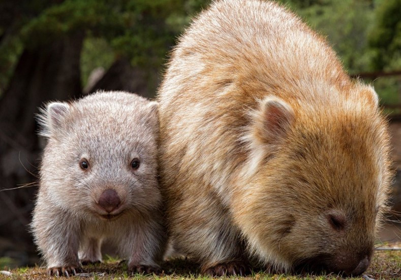 Вомбат — млекопитающее семейства сумчатых, родственник кенгуру, животное, которое прячет своих детенышей в брюшной сумке.