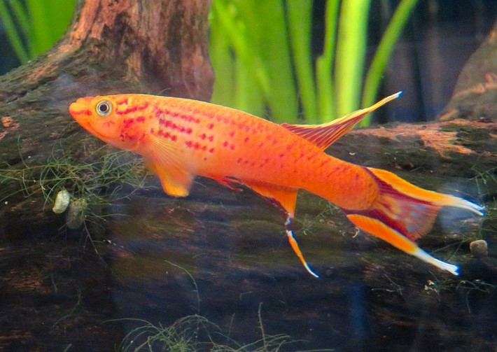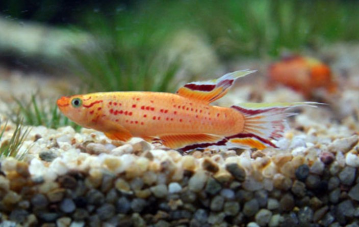 Эта рыбка ценится за яркую окраску: оранжевую, золотистую, шоколадную. Наиболее распространена в аквариумах цветовая форма “голд”, у которой основной цвет — ярко-оранжевый. А еще афиосемионы удобны в содержании, поскольку никакое дополнительное оборудование для аквариума не понадобится.