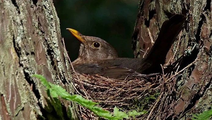 ✔️Гнездо черного дрозда имеет форму чаши. Оно строится из веток, листьев, травы, мха и перьев. Грязь служит цементом, удерживающим все это вместе. Строительство гнезда может занять неделю, и за его постройку отвечает самка.