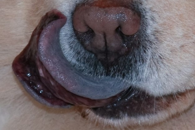 У некоторых животных язык может временно посинеть из-за недостатка кислорода. Это явление, наблюдаемое у собак, кошек или некоторых жвачных животных, не является результатом естественной пигментации, но сигнализирует о респираторном расстройстве, часто серьезном.