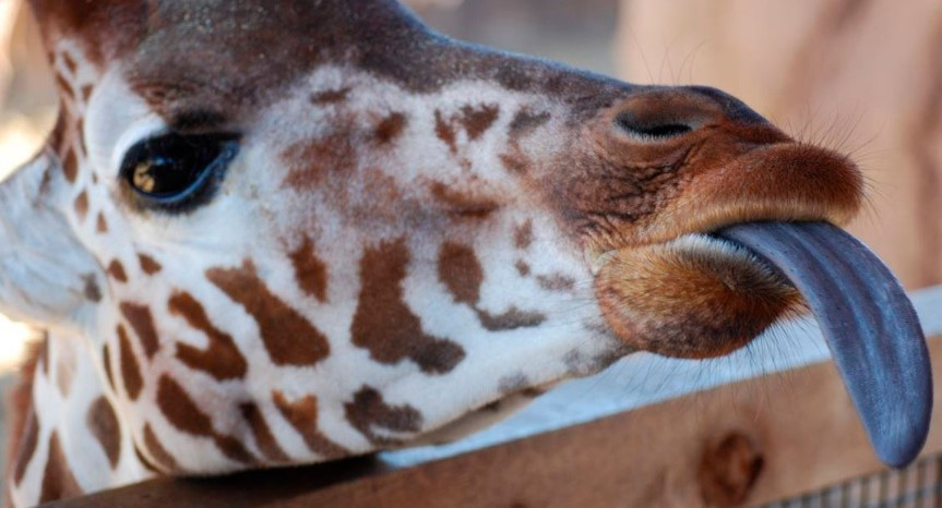Жираф — один из самых известных примеров. При длине почти 50 см его длинный цепкий язычок имеет темно-синий цвет, переходящий в черный. И это не эстетическая прихоть. Животное часами пребывает на солнце, поедая листья акации. Сине-черная пигментация — результат высокой концентрации меланина (пигмента, вызывающего загар кожи человека), который действует как защитный экран от солнечного излучения, ограничивая микротравмы, обезвоживание и воспаление. Если бы у жирафа язык был розовый, он бы быстро сгорел под воздействием ультрафиолета. Кроме того, эта темная окраска укрепляет ткани, делает их более устойчивыми к острым шипам акаций, что значительно снижает риск травм.
