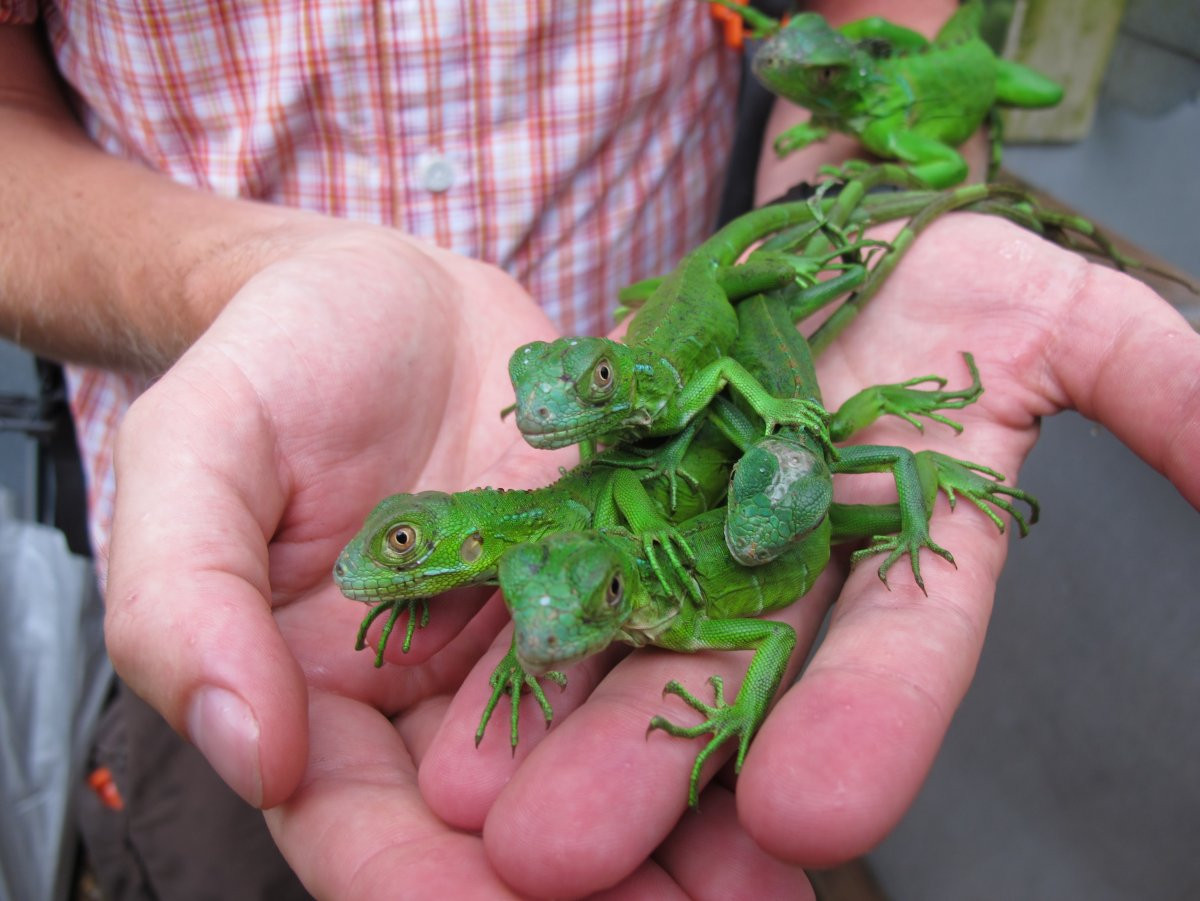 Всех новых игуан нужно тщательно осматривать на наличие кожных клещей и сдавать анализ кала у ветеринара, чтобы выявить паразитов. Внутренние паразиты часто встречаются у игуан из-за плохих условий содержания. Существует несколько препаратов для их уничтожения, но важно не превышать дозировку. Клетку и все предметы в ней необходимо одновременно с лечением рептилии дезинфицировать.