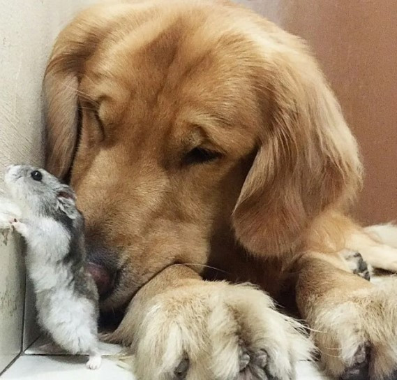 Будьте осторожны: даже дружелюбная собака может случайно раздавить хомяка, если попытается поднять его с земли. Держите маленького хомячка в безопасности.