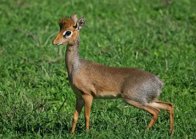 Дикдик — это карликовая антилопа, размером едва ли крупнее зайца, с гламурными ресницами и огромными глазами. Её название происходит от звуков тревоги: “дсик-дсик”. Дикдики обитают в засушливых степях Южной Африки.