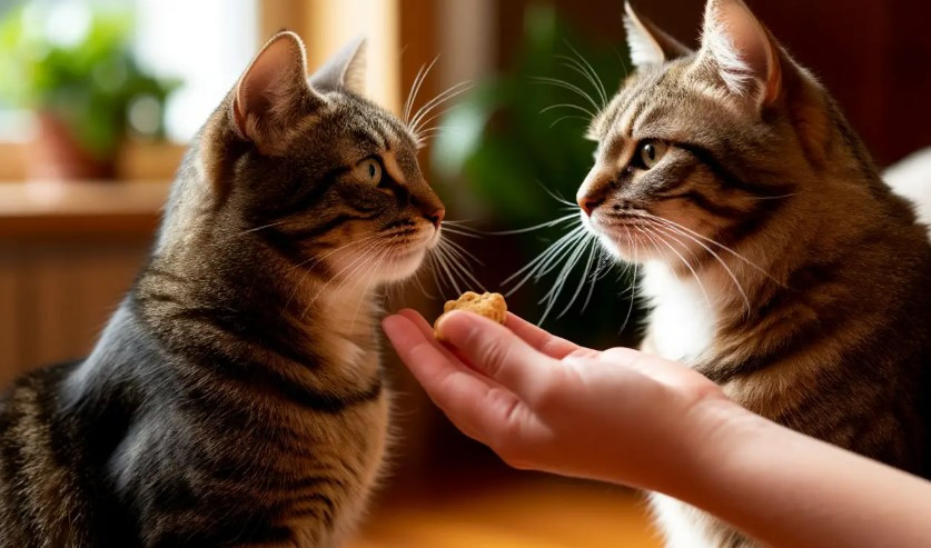 Дрессировка: лакомства — отличный инструмент для обучения и поощрения кошек.